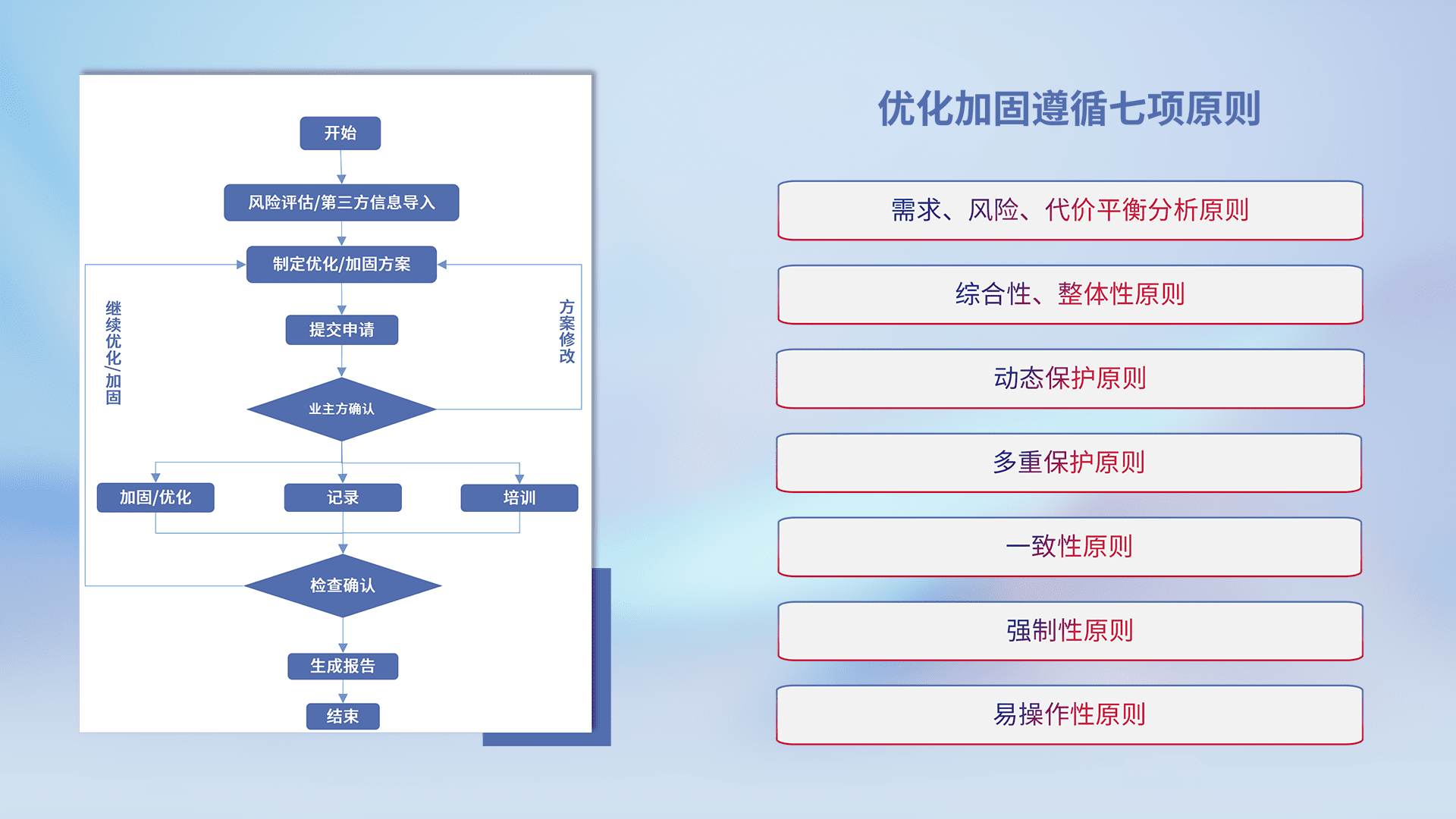 最大程度利用现有资产,,对评估发现的问题进行封堵与整改,,,,防止漏洞被利用,,,提升整体网络安全性,,,为客户带来高标准的优化加固服务。。